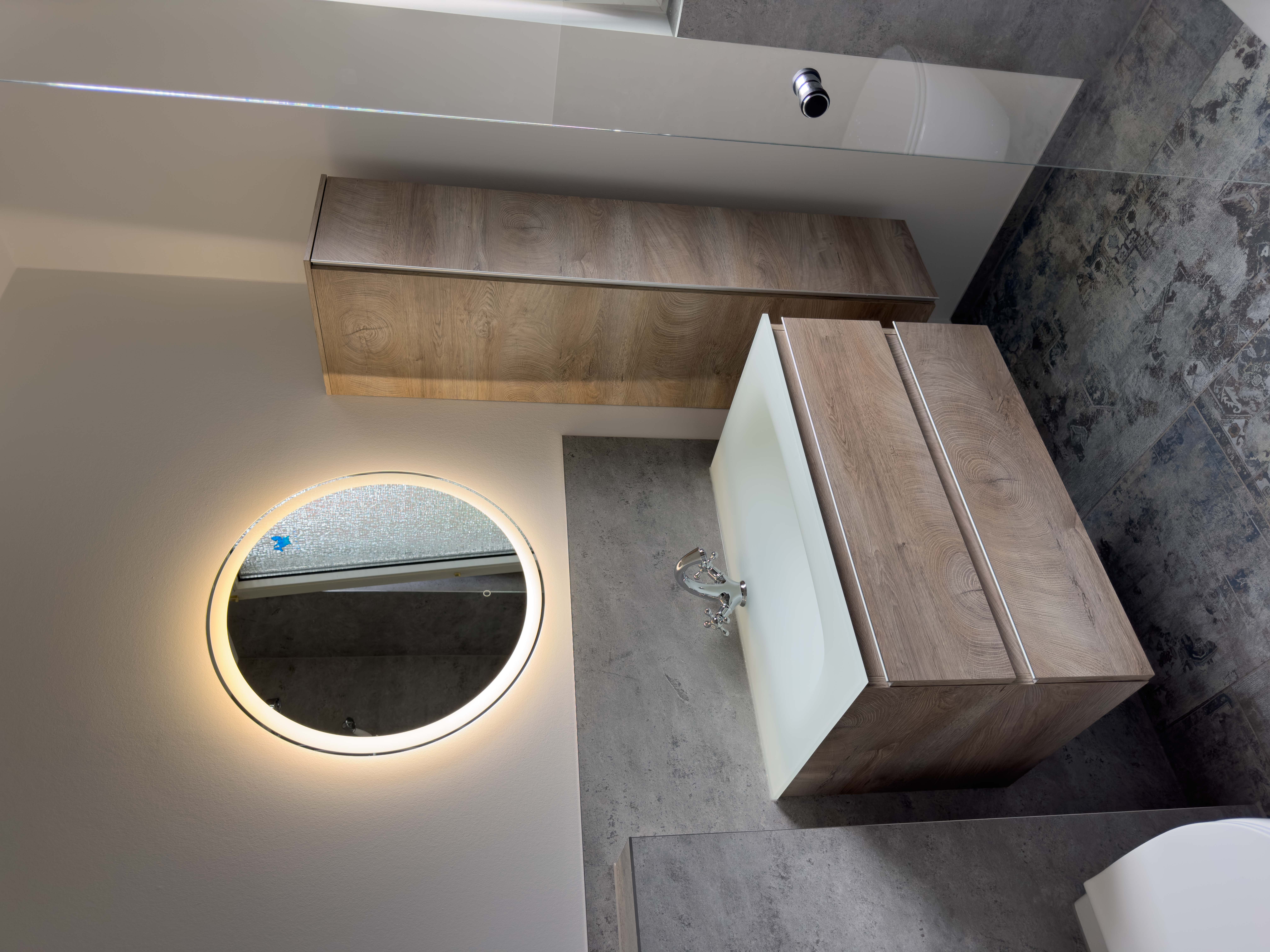 Durch die Kombination aus moderner Technik, klarer Linienführung und einer hellen Gestaltung entstand ein zeitgemäßes, komfortables Badezimmer, das sowohl optisch als auch funktional überzeugt.